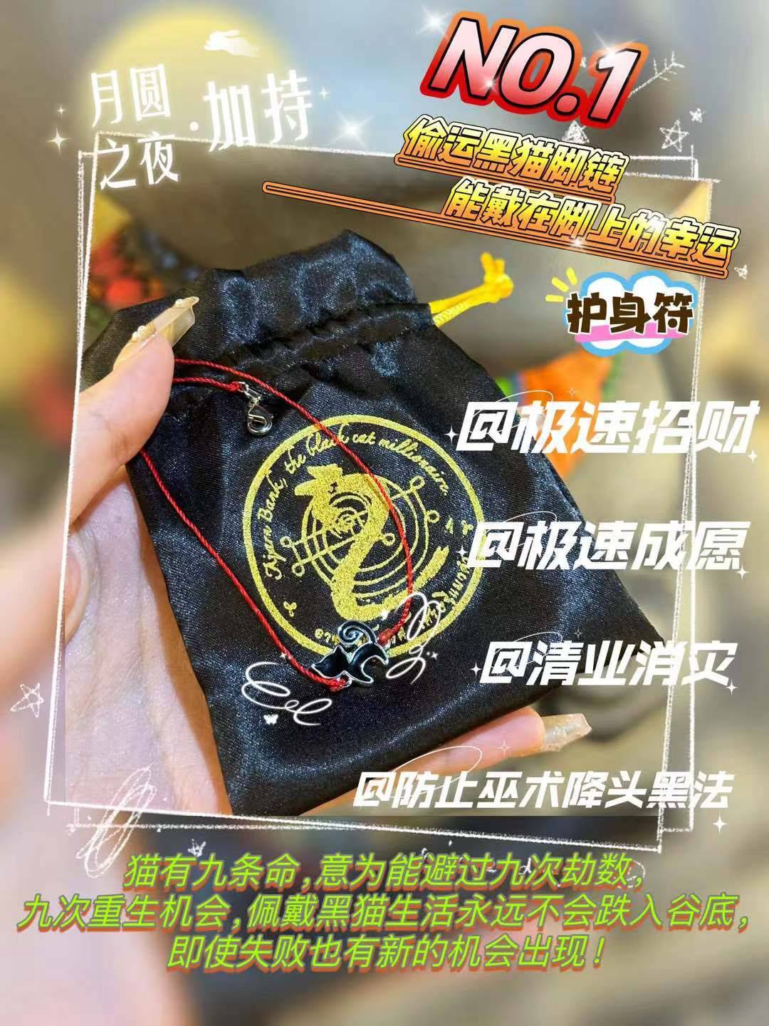 師傅將能調動黑貓靈力的符刻在貓身上面,讓腳鏈猶如黑貓的尾巴一樣,與佩戴者糾纏一起,心靈相通,心隨你動!如同黑貓蟄伏跟隨在你的身邊,黑貓與你如影隨形,一直守候著你,!