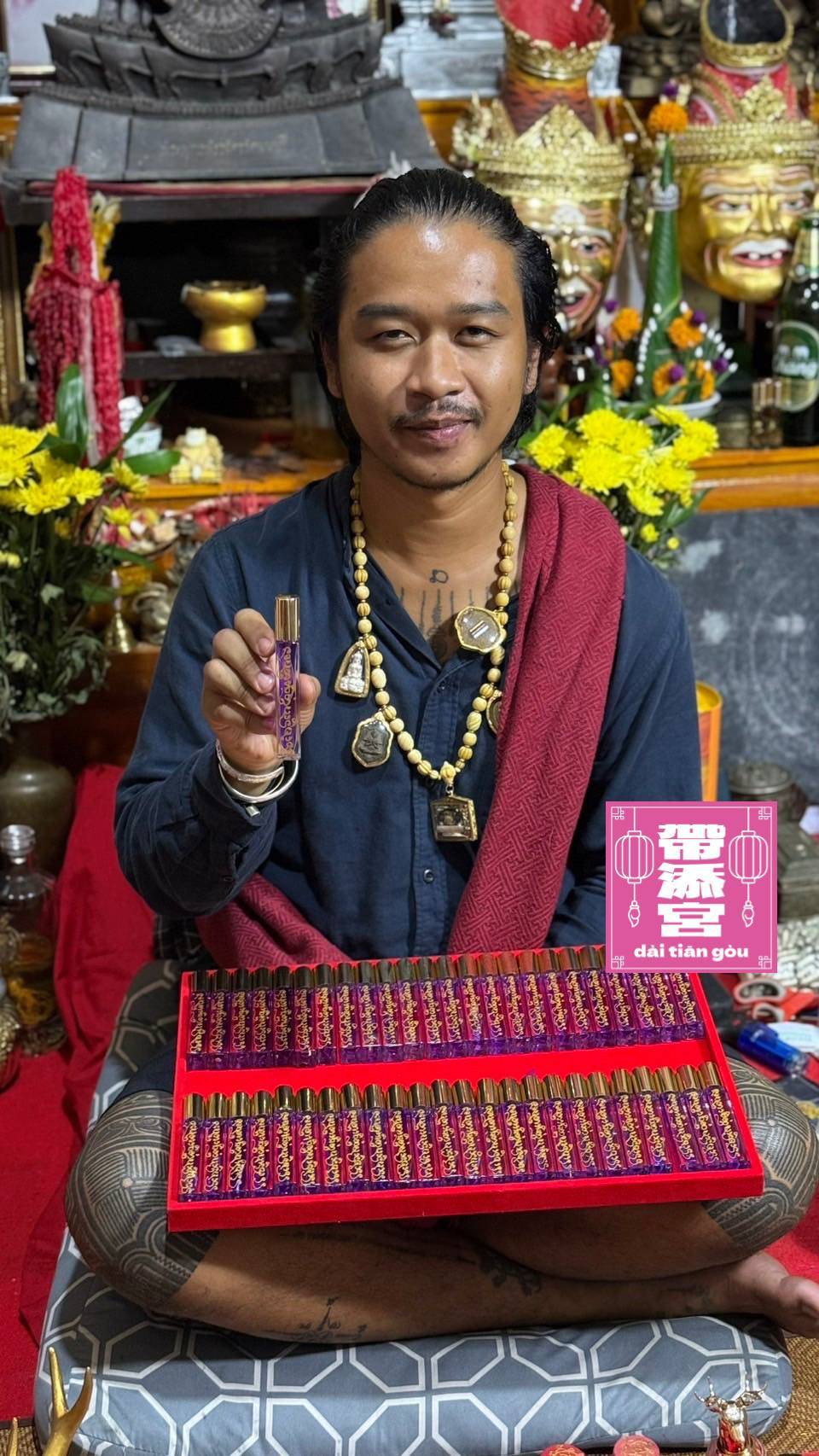 阿贊財瓦以自身修持能量把「吸引、吸財、吸緣」寫進香水裡,每一支都有師父逐字書符