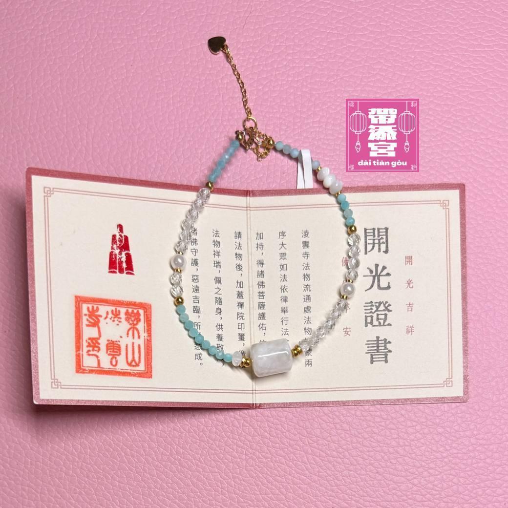 搭配天河石與白晶串珠,形成清濁相生之勢,寓意納氣、聚福集財、引正緣。
